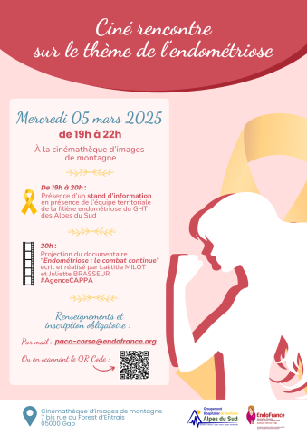 Les professionnels du Groupement Hospitalier des Alpes du Sud et de l’association EndoFrance s’associent pour vous inviter à une soirée Ciné Rencontre autour de l’endométriose.