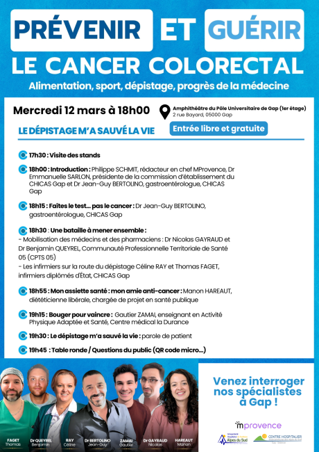 Ne manquez pas cet événement organisé autour de la prévention et du traitement du cancer colorectal. Le mercredi 12 mars 2025 à Gap : Rencontre-débat gratuite ...